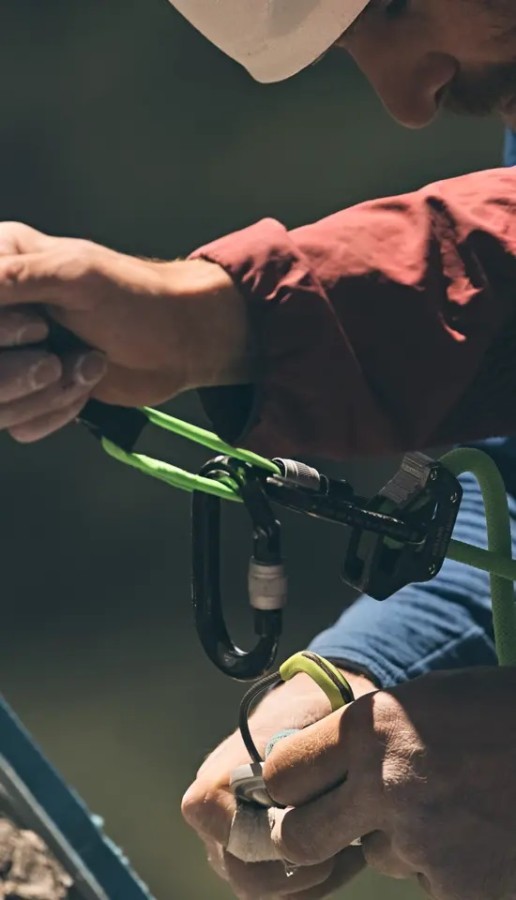Integrated KIWI SCREW carabiner for attachment to the anchor point
