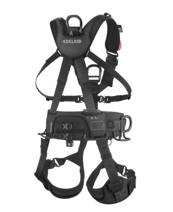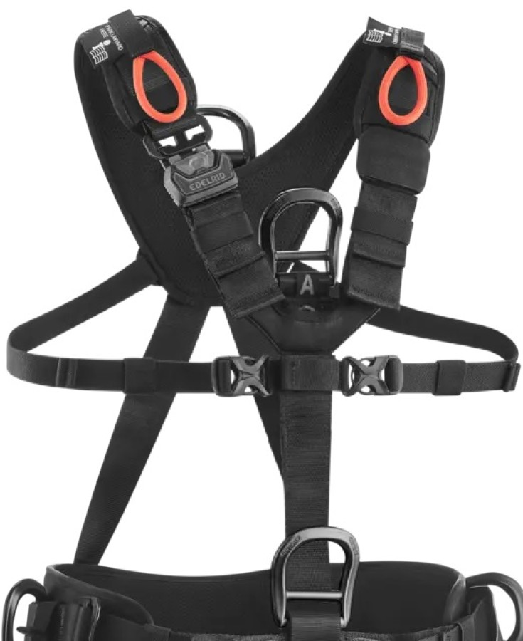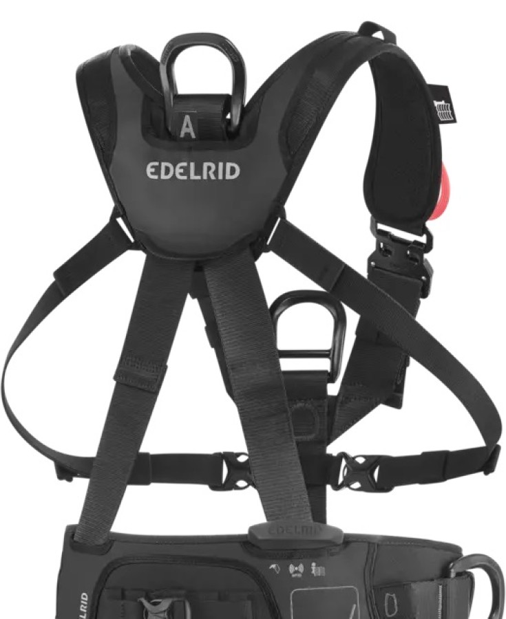 Two loops on the chest harness for attaching a radio set or for accommodating a fall arrester