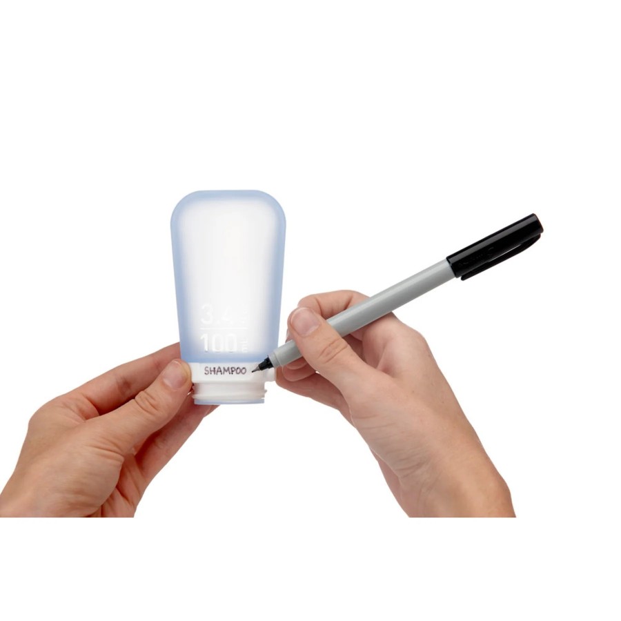 Flat area on bottom enables GoToob+ to stand up for hands-free filling.
