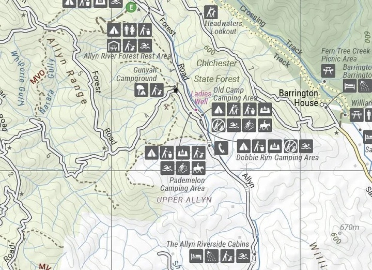 Detailed map of Barrington Tops National Park (at 1:100,000 scale)
