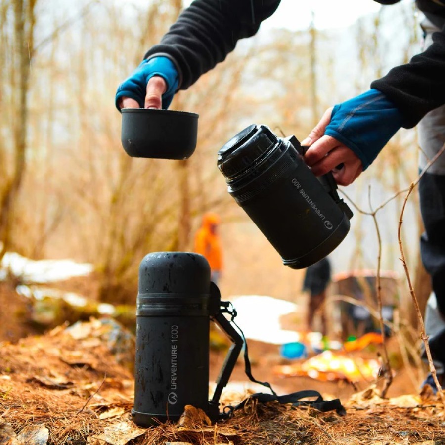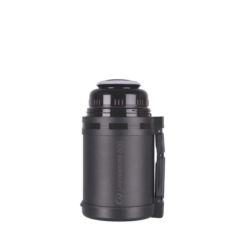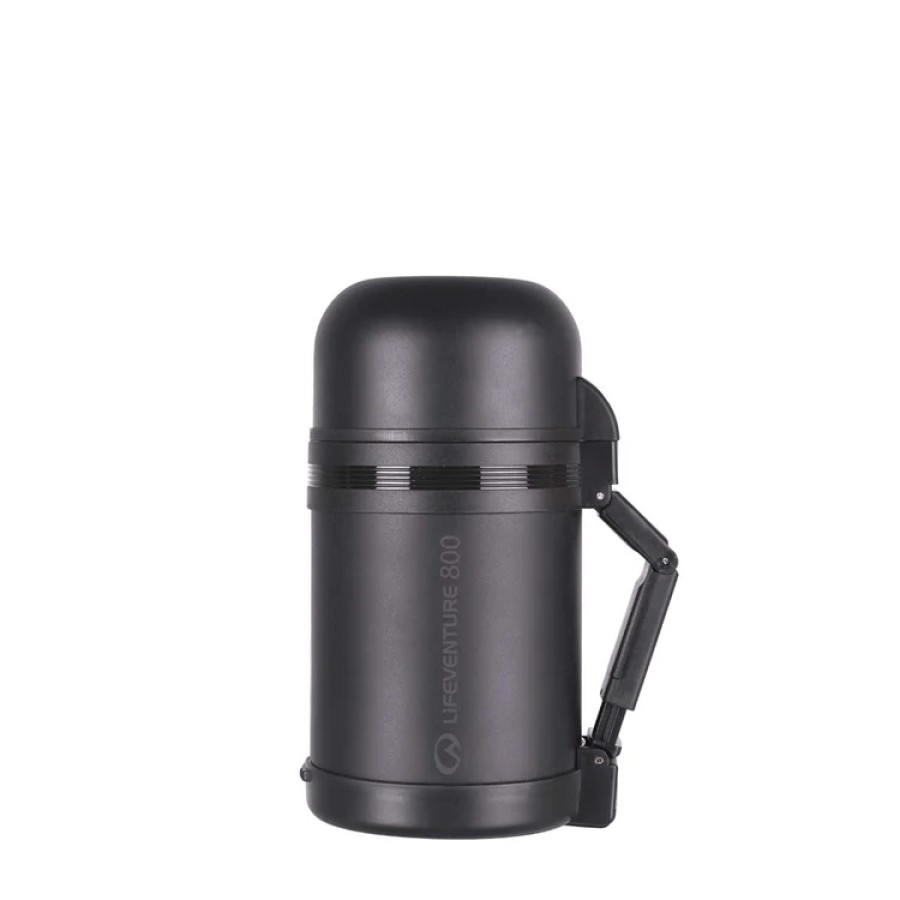 These solid thermally induced wide mouth flasks come with a clever retractable side handle and removable shoulder strap. The stainless steel lid can be used as a cup and there’s a second ‘buddy’ cup in the lid.