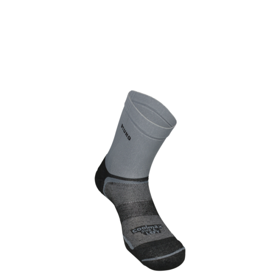 Left foot and right foot differentiated to get a perfect adjustment to the feet. Progressive compression leg to boost blood flow. Elastic band for extra foot support. “Honeycomb” stitch for greater dryness. Foot additional padding provided by double weaved. Medium thickness.