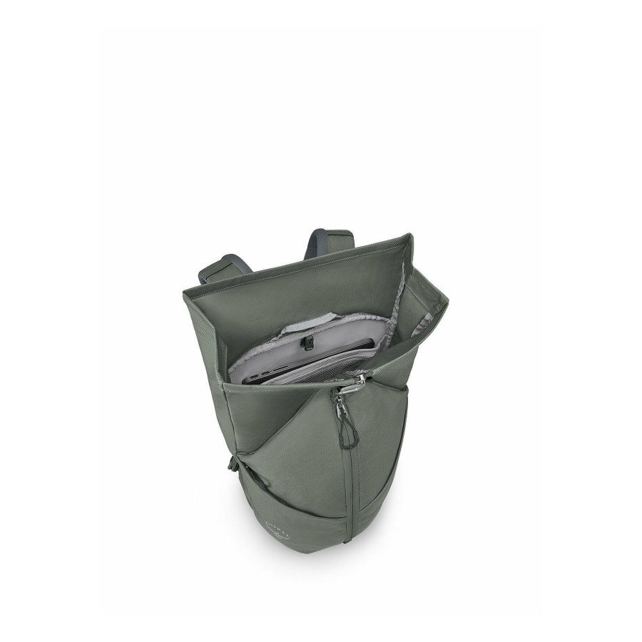 Roll top closure with vertical zip to expand access and visibility into the main compartment; with adjustable webbing and aluminum hook