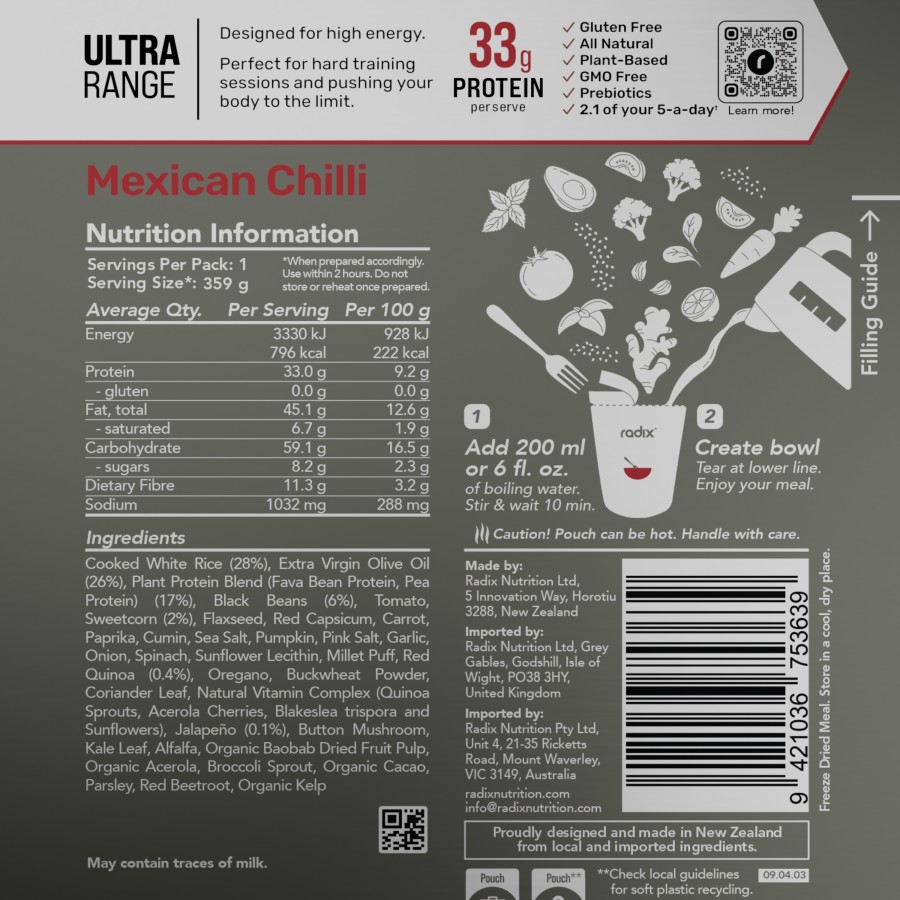 “Cooked White Rice (28%), Extra Virgin Olive Oil (26%), Plant Protein Blend (Fava Bean Protein, Pea