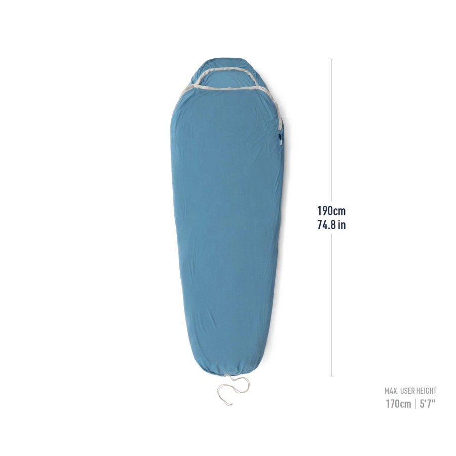 The Breeze Liner delivers all-weather comfort with a breathable blend of COOLMAX® EcoMade and plush biobased Tencel Lyocell fibres that wick moisture to keep you comfortable even on warm nights. Its super-stretchy fabric, drawcord opening footbox, and arm openings (mummy only) provide versatile freedom of movement—ideal for use inside or outside your sleeping bag. Easy to clean and quick-drying, it features HeiQ Fresh odour control and helps extend your sleeping bag’s lifespan by reducing wash frequency.