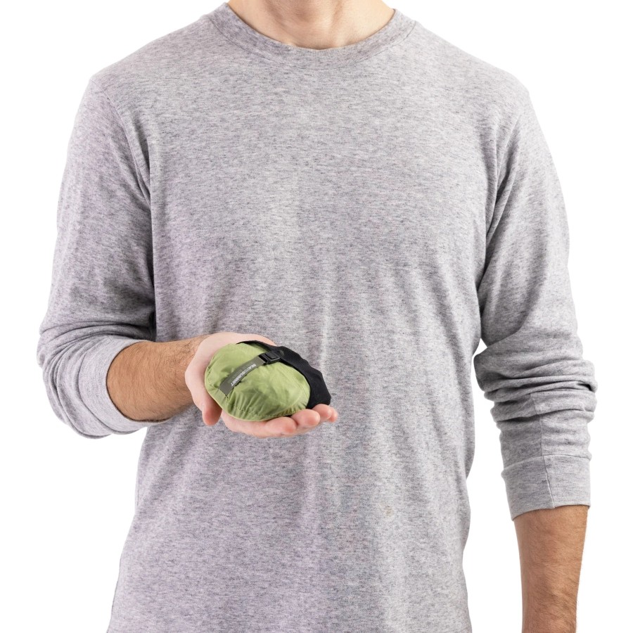 So light you’ll barely notice it. At just 55g, it packs into its own micro storage pouch for effortless carrying