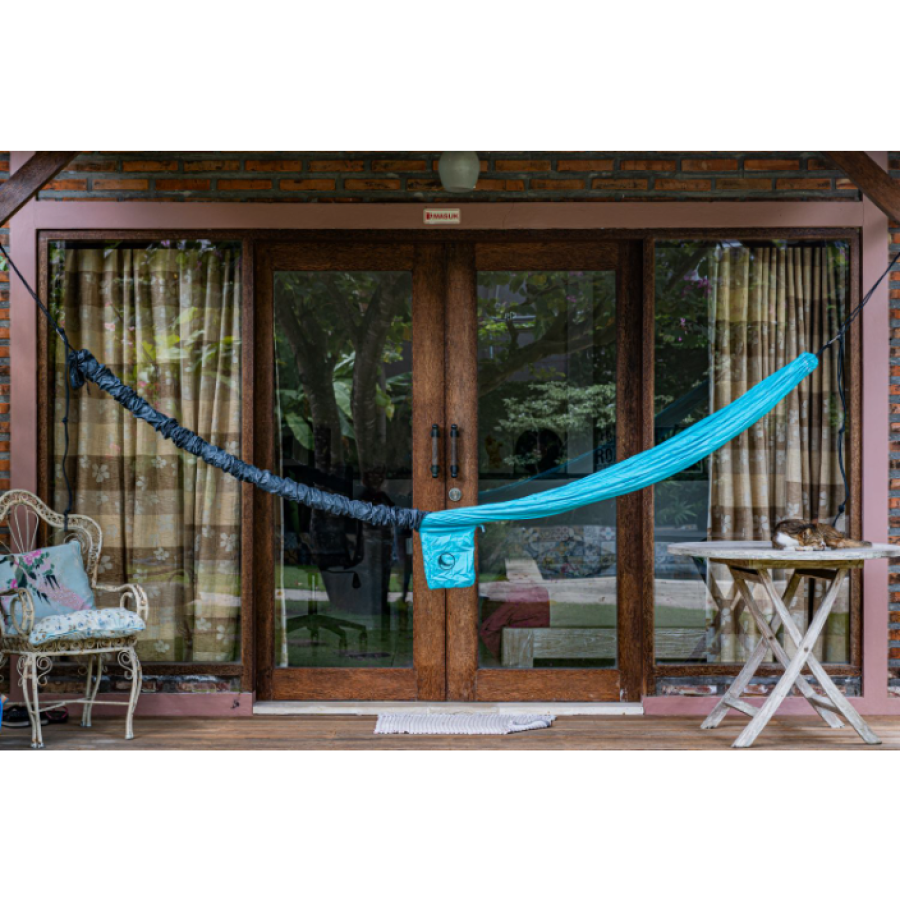 The ultimate protective hammock cover Our Sleeve protects your hammock like a second skin. An essential optional accessory if you plan to leave it in the sun for an extended time. It keeps your hammock clean and stops the wind from flapping it around when not in use. This sleeve fits only on the Compact, Lightest, Original and King Size Hammocks! The Convertible Bug Net 360°, the suspension systems, yourself or your friends need to get out of the hammock before you can slide the Sleeve over your hammock! 🙂