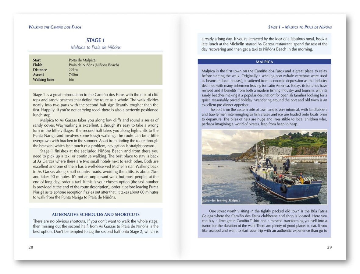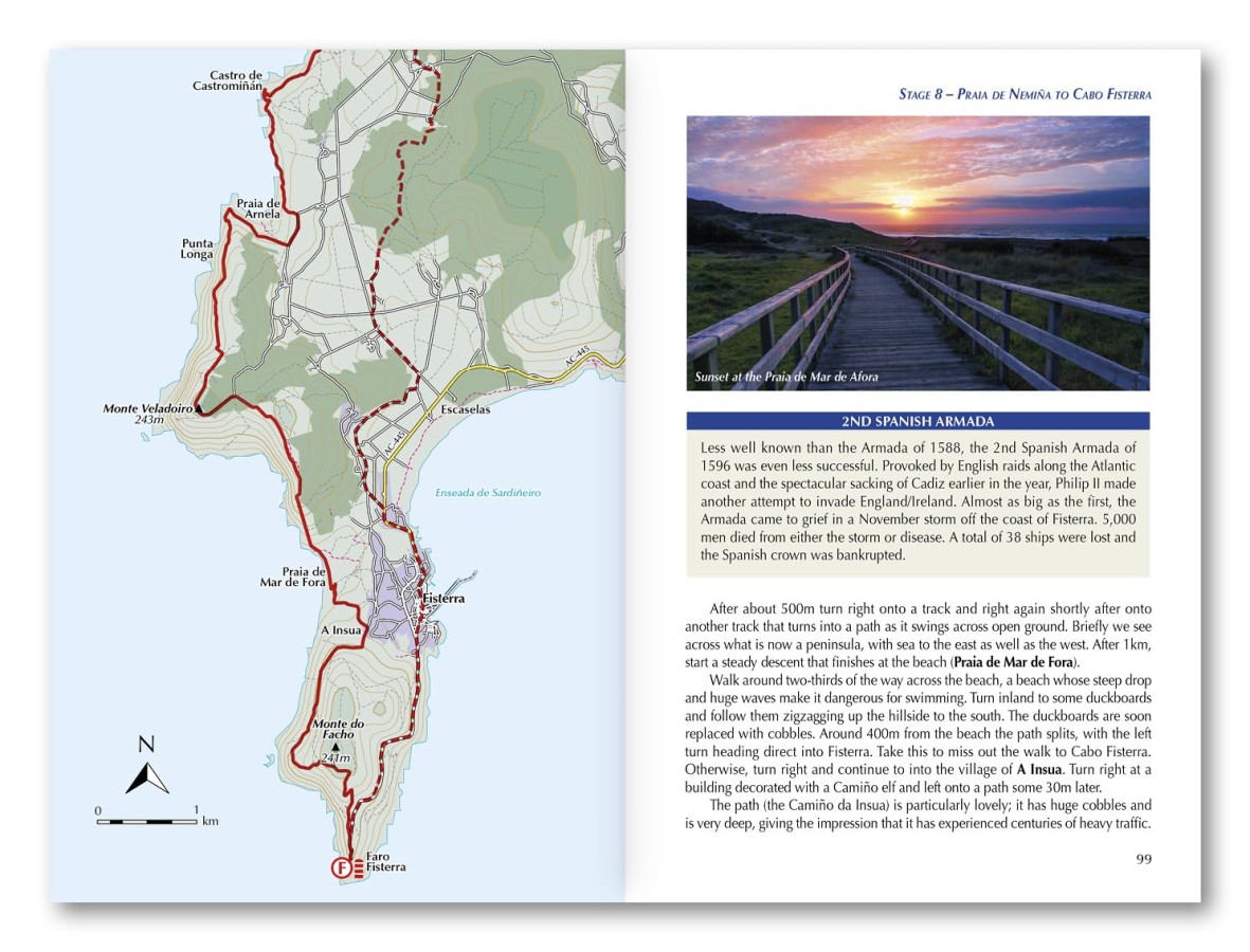 The guide provides in-depth descriptions of the route alongside clear mapping to aid navigation. It includes practical information for both before and during your trip, and details about wildlife and historic sites along the walk. In the back of the guide are a series of appendices listing accommodation, main Galician festivals, and useful contacts.